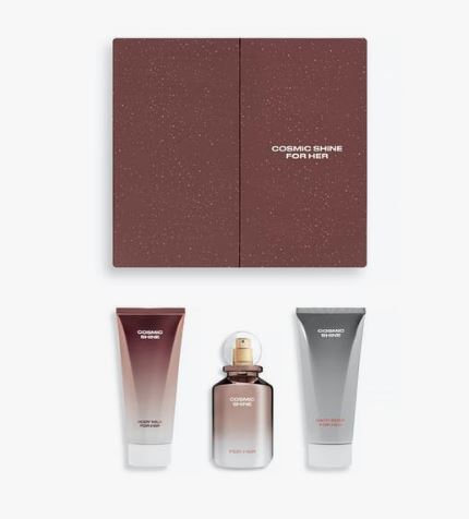 Лимитированная коллекция!! Подарочный набор Shine Cosmic женский содержит парфюм 100 мл, гель для душа 100 мл, лосьон для тела 100 мл. Имеет приятный нежный цитрусово - цветочный аромат . Очень напоминает Magnetism Escada. Отлично для подарка! Наличие уточняйте, пожалуйста, перед оформлением заказа!