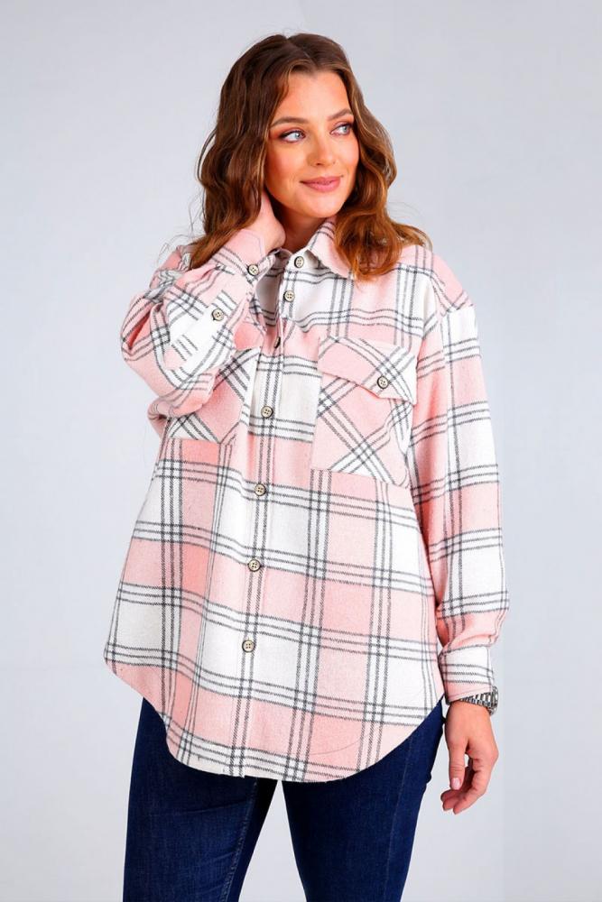 Клетчатая стильная рубашка, свободного покроя, универсальная, благодаря чему отлично сочетается с самыми разными вещами. К тому же она очень комфортная и теплая, поэтому к ней хочется возвращаться снова и снова. Это отличный вариант для прохладных дней. Рубашка с центральной застежкой на центральнокроеную планку. Плече спущено, пройма занижена. Рукава на манжете с фигурными краями. Воротник рубашечный на стойке. В изделии на полочках настрочены нагрудные карманы. Над карманом настрочен клапан, который закрывается на пуговицу. Ткань очень приятная при контакте с кожей.