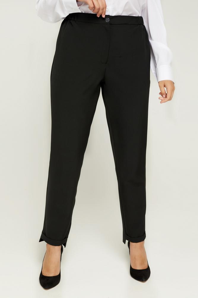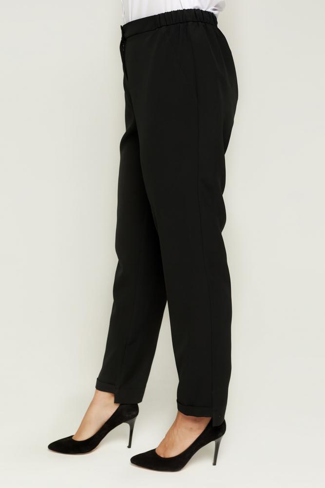 Брюки из костюмной ткани. Растяжимость ткани низкая. Модель с высокой посадкой. Застежкой служит небольшая молния и пуговица, расположенная на вшивном поясе. Сзади - имитация кармана листочка, декорированного пряжкой. Брюки могут стать гармоничной компонентой образов в классическом, деловом или кэжуал стиле. Удачное цветовое решение обеспечивает широкий выбор оттенков и фактур при выборе остальных элементов образа.
