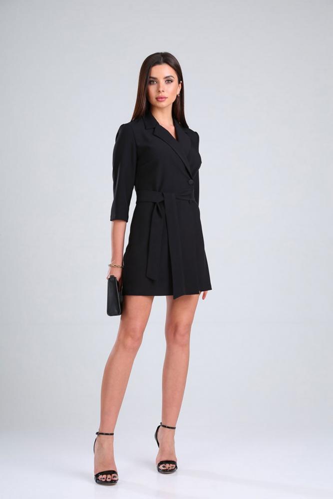 Комбинезон женский, прилегающего силуэта с втачными одношовными рукавами. Перед с нагрудными вытачками, выходящими из бокового шва. Застежка центральная однобортная, на петли и пуговицы, до низа. Перед – имитация удлиненного жакета. Спинка отрезная. Нижняя часть – шорты, с талиевыми вытачками. Верхняя часть спинки со средним швом и талиевыми вытачками. В боковом шве – потайная застежка-молния.