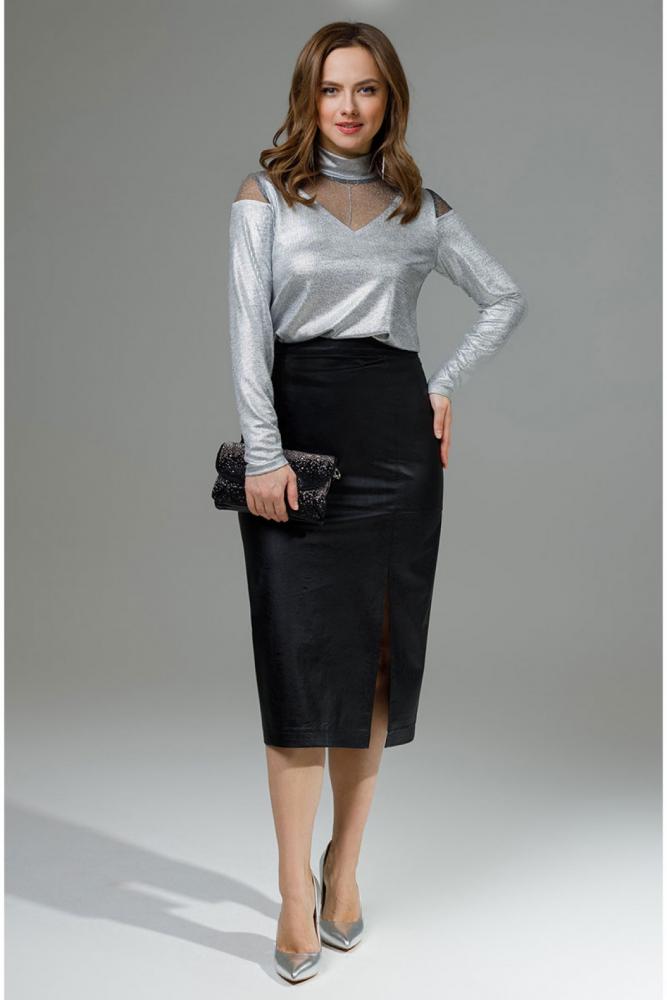 Элегантный комплект из нарядной водолазки и кожаной юбки.