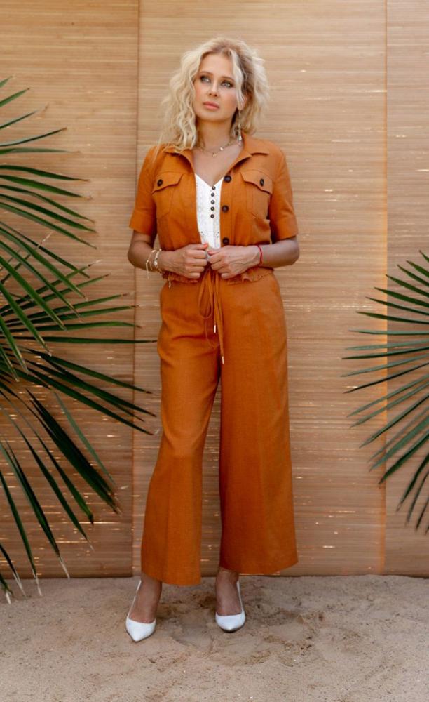 Состав ткани: Жакет, брюки: лен 100%; блузка: хлопок 100%.