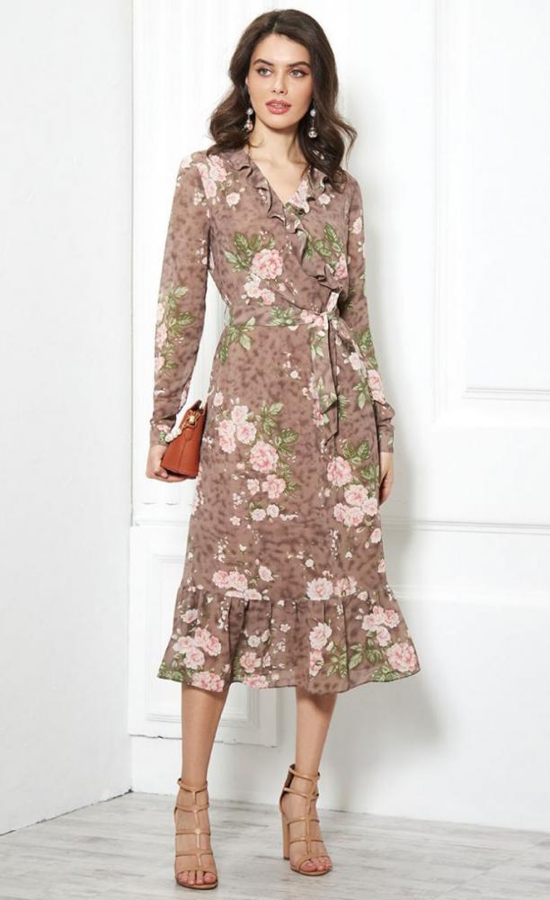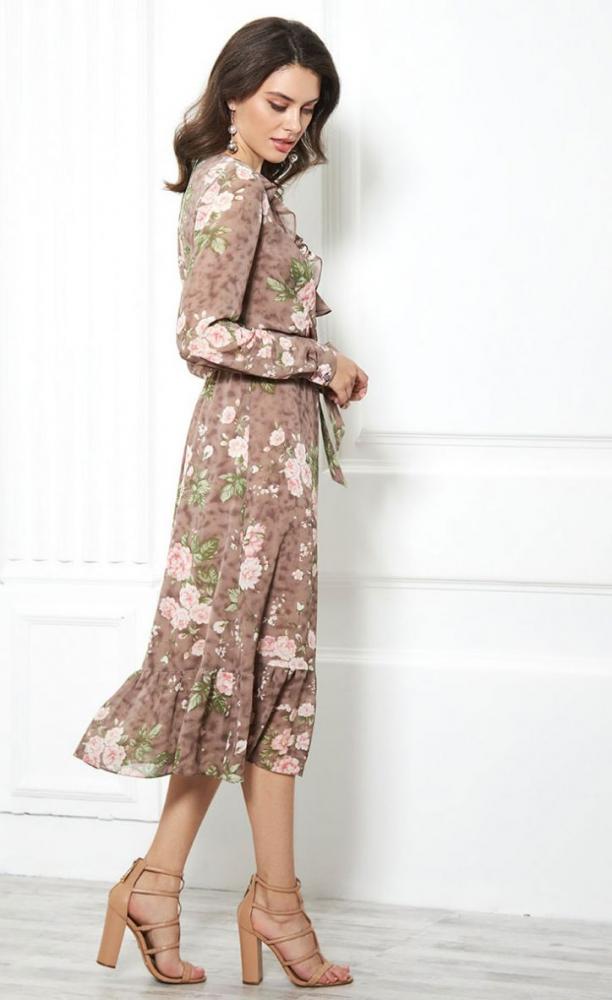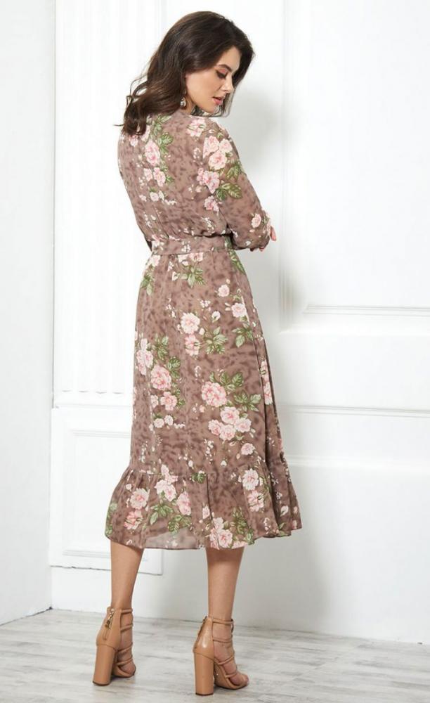 Струящейся шифон делает платье легким и удобным, помогая ему заслуженно стать одним из любимых вещей гардероба. Рюша по лифу и низу платья, а также подчеркнутая поясом линия талии придает романтический, нежный образ женщине.