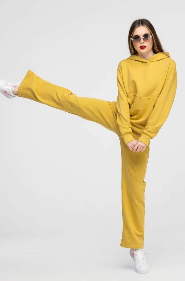 Спортивный костюм: верх - худи-оверсайз; низ - брюки палаццо с высокой посадкой. Выполнен из футера 3-х нитки премиального качества петля, без начеса. Благодаря натуральному составу ткани (90% хлопок, 10% полиэстра), прекрасно подходит для любой погоды. Именно в этом костюме вам будет комфортно, и удобно. Худи в стиле oversize с несъемным капюшоном на хлопковой подкладке в тон, линия плеч занижена, фигурный карман, смещенный боковой шов и необычное оформление линии низа придают изюминку данной модели. Актуальные брюки палаццо свободного кроя, боковые карманы, затягивающийся шнурок на талии. Модель представлена в самых актуальных цветах сезона! Параметры модели на фото: Ог-84, От-64, Об-92, рост 167 см, на ней размер 42-170.