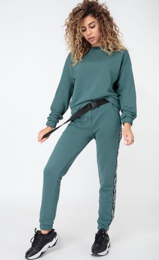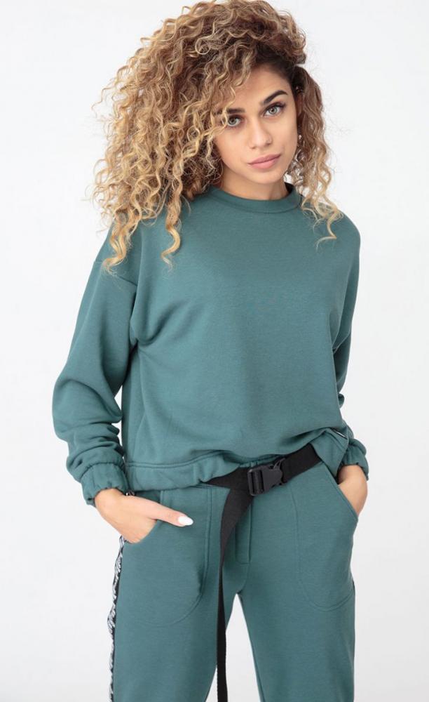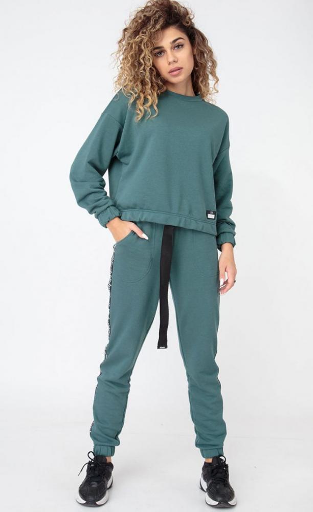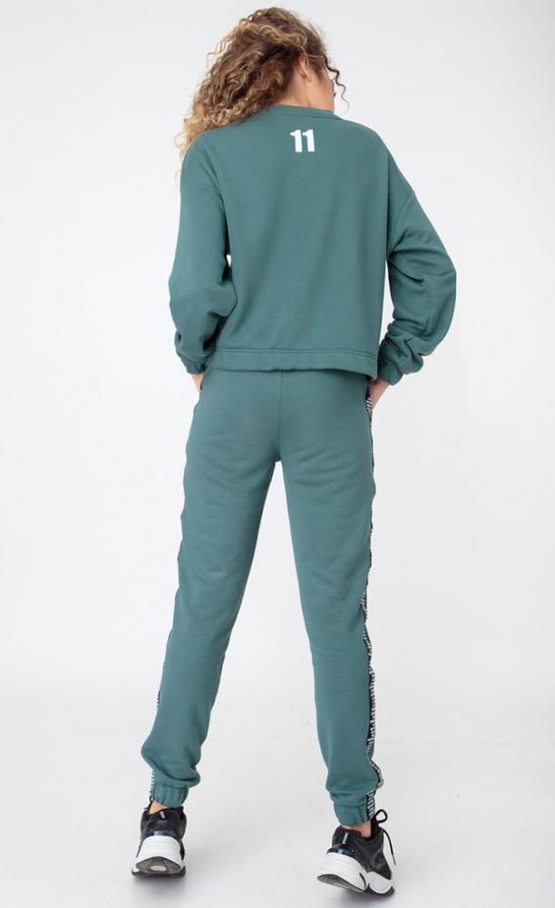Состав ткани: Хлопок 95%, ПЭ 5%.Женский костюм выполнен из хлопкового трикотажа футер 3-нитка. Чуть укороченный свитшот свободного прилегания. Манжеты и низ, как и низ брюк, собраны на резинку. Украшен нашивкой спереди и печатью на спине "11". Брюки с карманами, пояс на резинке, который дополняет широкая тесьма с карабином. Рост модели на фото 173см. Длина свитшота по спинке 53 см. Длина рукава от горловины 75 см. Длина брюк по боковому шву 105 см, по шаговому шву - 82 см.